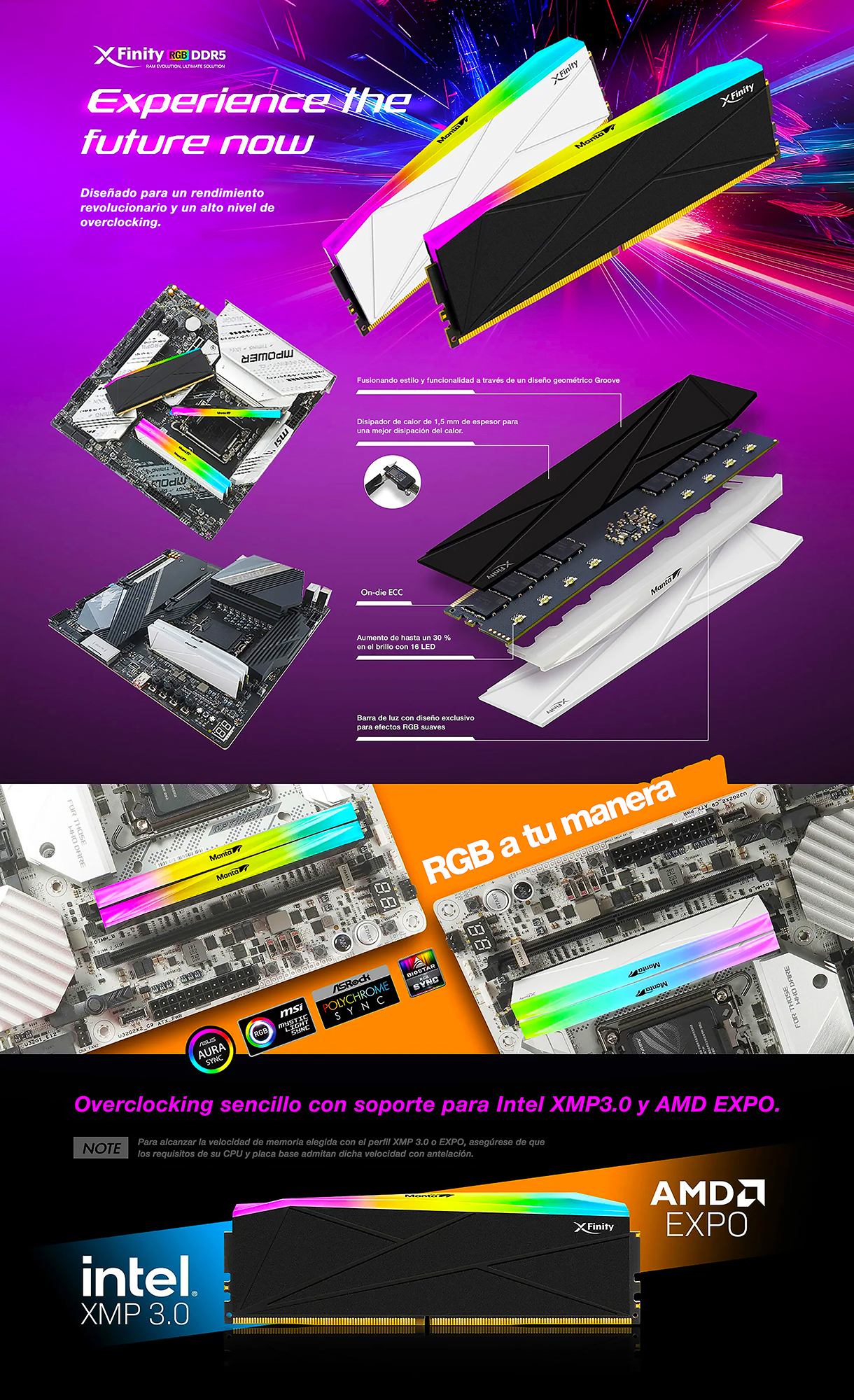 Cada módulo de memoria DDR5 está equipado con circuitos integrados DRAM de SK hynix y chips PMIC (circuito integrado de administración de energía) integrados, lo que garantiza un rendimiento de overclocking extremo, velocidades más rápidas, mayor frecuencia y estabilidad a largo plazo.